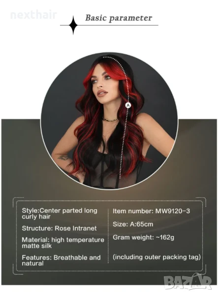 Ефектна перука от синтетичен косъм, може да издържи на температура от 150-170 градуса.