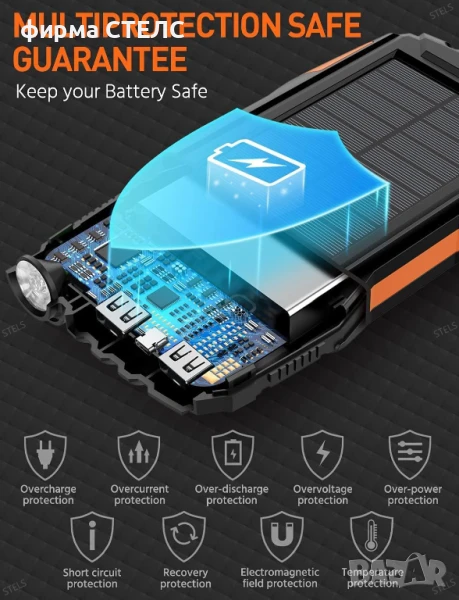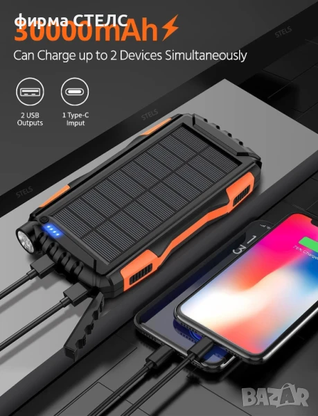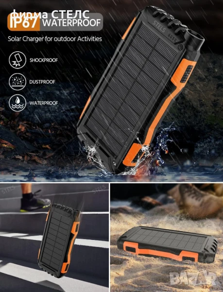 Външна батерия STELS EnergyPlus 30K е мощен PowerBank с капацитет 30000mAh, предназначен за надеждно зареждане на мобилни устройства при ежедневна употреба, пътувания, туризъм и къмпинг. Тази преносима батерия има вграден соларен панел за автономно зареждане от слънчева светлина, което я прави идеален помощник при продължително пребиваване на открито.