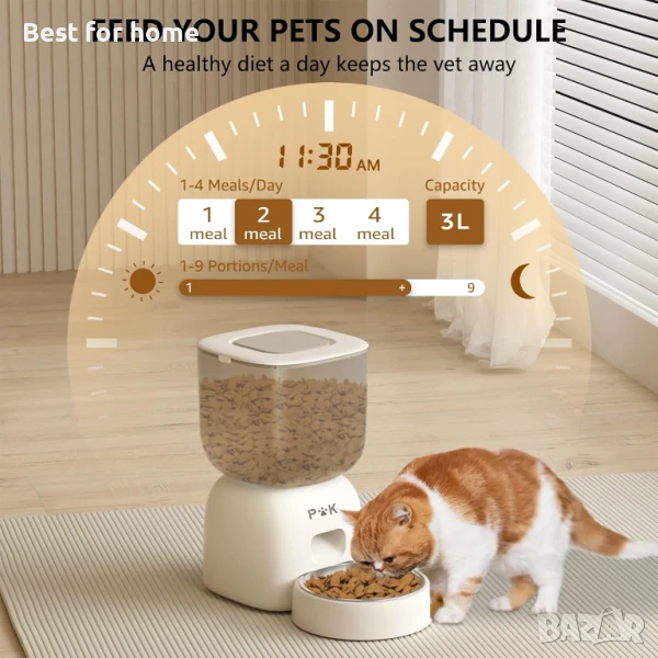 【Лесно програмиране】Хранилката за котки PUPPY Kitty може да настрои 1-4 хранения на ден, с 0-9 порции на хранене (8 г 2 г всяка). Нашата хранилка е с капацитет 3 литра и може да съхранява храна за домашни любимци до две седмици.