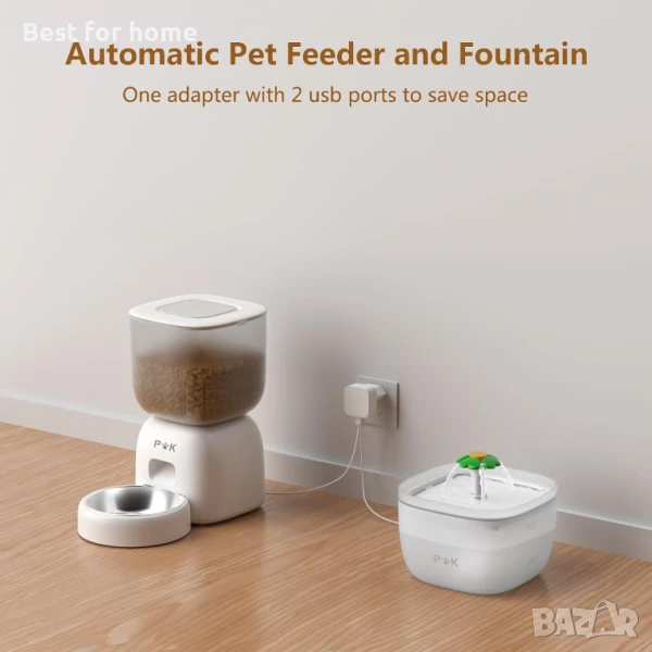 Комплект от автоматична хранилка за котки и чешма PUPPY KITTY с гласови команди