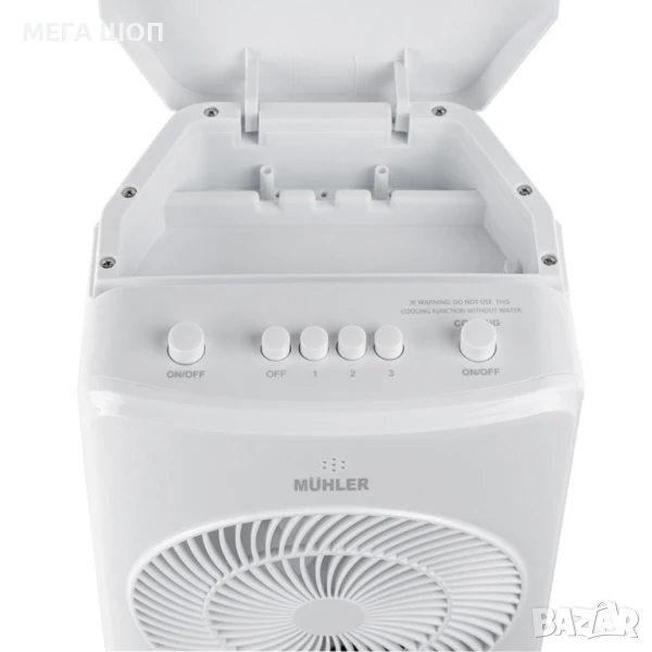 Мощност: 65W; Напрежение: 220-240V / 50-60 Hz; Резервоар за вода: 4 литра; Охлаждащи блокчета: 2 броя (включени в комплекта); Степени на работа на вентилатора: Ниска, средна, висока; Ниво на шум: до 65 dB; Размери: 235x210x565 мм; Вариант 1: Механично управление: Лесно и интуитивно управление чрез въртящи се копчета. Подходящо за потребители, които предпочитат простота и надеждност; Вариант 2: Дигитално управление: Модерно управление с LED дисплей и сензорни бутони. Възможност за прецизно настройване на функциите и таймера. Идеално за потребители, които ценят технологичните иновации и удобството.