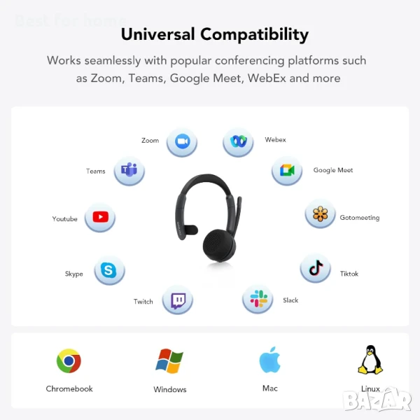 【Универсална свързаност и широка съвместимост】 Свържете се чрез Dongle, Bluetooth или USB A/type-C кабел към вашия компютър/Mac/лаптоп/мобилен телефон/таблет. Включеният USB dongle е подходящ за компютри без Bluetooth, осигурявайки широка съвместимост с водещи платформи като Teams, Zoom, Webex и други. Съвместими с Windows/Mac/Linux/Android/iOS, тези безжични слушалки са вашият надежден спътник за шофиране/работа/разговори/обучение/конференции/кол центрове/уебинари и домашни офиси.