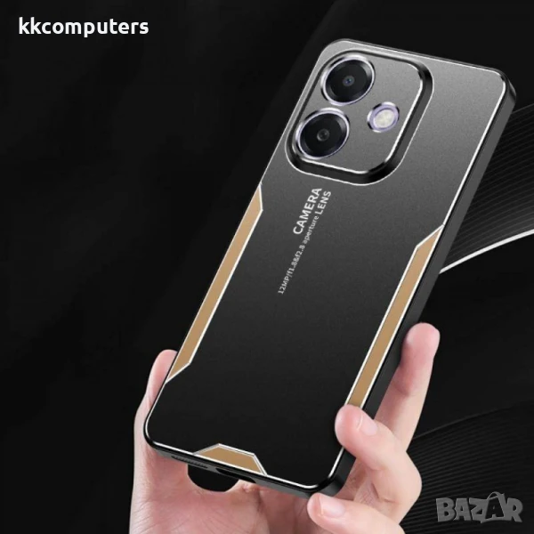 Представяме ви премиум защитния калъф за Oppo A5 Pro 4G / 5G и A5 Energy 5G (China) – създаден за максимална защита и стил. Изработен от алуминиева сплав, TPU и PC материали, този калъф осигурява здравина и устойчивост при удари и изпускания. Дизайнът с метални акценти и меден отблясък придава модерен индустриален вид.