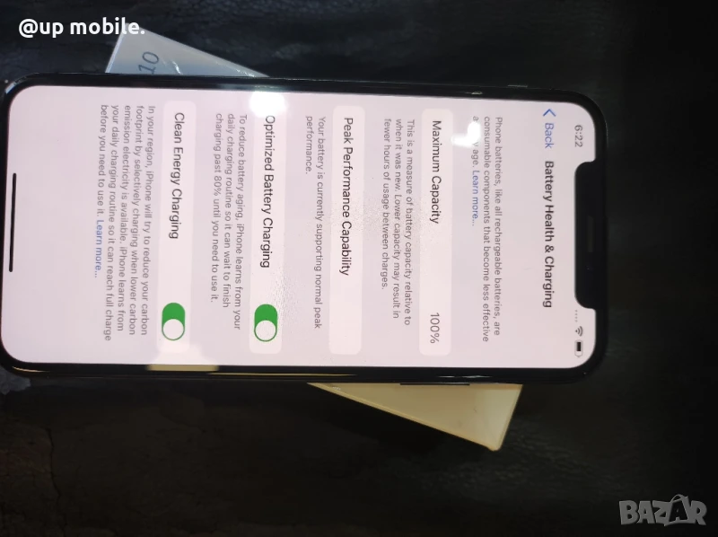 Телефона е в безупречно състояние.Батерия 100%.Всички функции работят.Оригинален дисплей.Face id работи.Пълен комплект .Нов стъклен протектор, заден гръб, зарядно устройство ново.Гаранция 5 месеца.