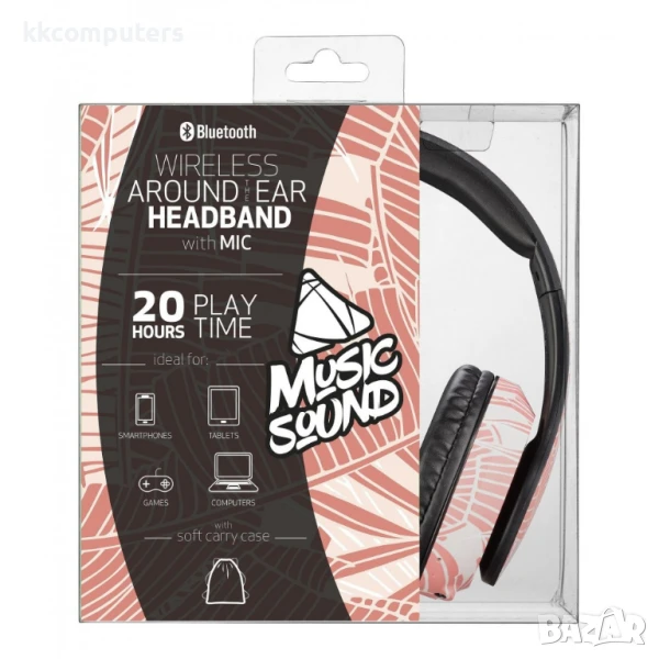 Bluetooth слушалките Music Sound са цветни, леки и идеални за слушане на музика у дома или в движение. Липсата на кабели позволява пълна свобода на движение, а благодарение на меките слушалки и разтегателната диадема, ще можете да слушате любимите си песни удобно. Контролите на слушалките ви позволяват да управлявате обажданията и музиката с едно движение в продължение на 20 часа. Слушалките се зареждат за 2 часа и имат режим на готовност от 30 часа.