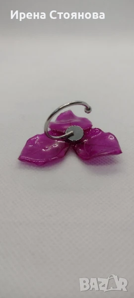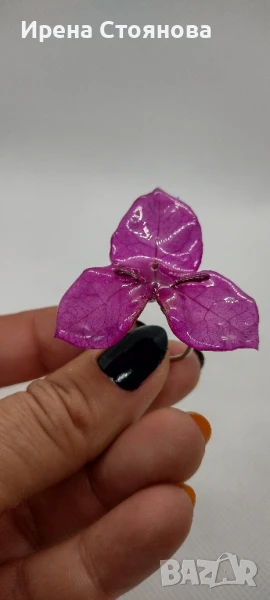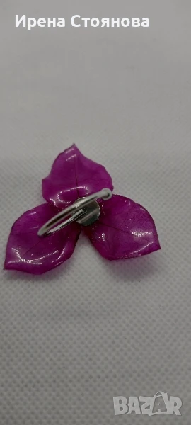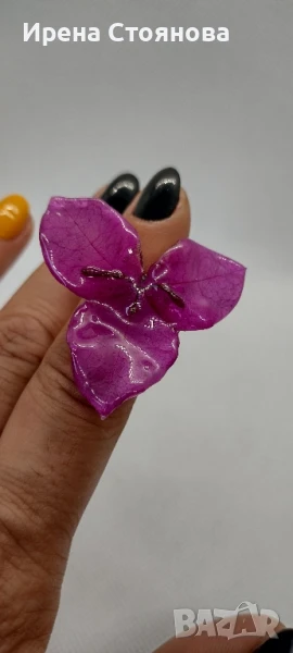 Регулируем пръстен с естествен цвят на бугенвилея. Цвета е с размери 4/4,5 см.