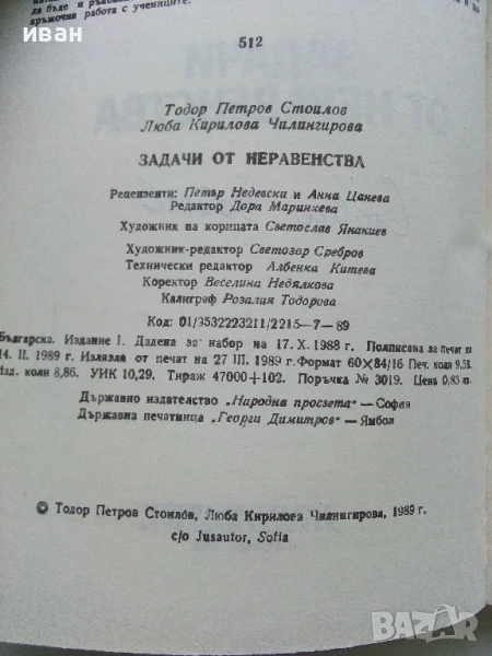 Задачи от неравенства - Т.Стоилов,Л.Чилингирова - 1989г. → Обява 50565092