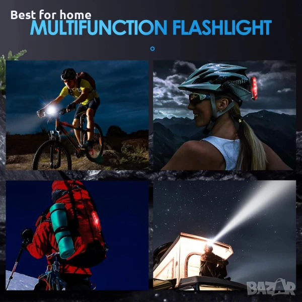 【Многофункционален комплект LED велосипедни светлини с USB презареждащи се】Този велосипеден фар с презареждащи се светлини е подходящ не само за каране, но може да се използва и като фенерче за аварийни ситуации. Дръжте го в колата, мазето, тавана или в комплекта за аварийни ситуации. Той е идеален за бягане, джогинг, туризъм, къмпинг, лов, смяна на гуми, нощни семейни/детски занимания, прекъсвания на електрозахранването и други.
