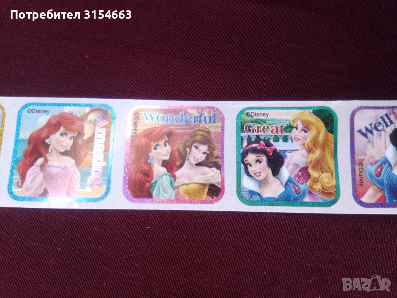 Ролка стикери Дисни принцеси, 200 броя → Обява 50565338