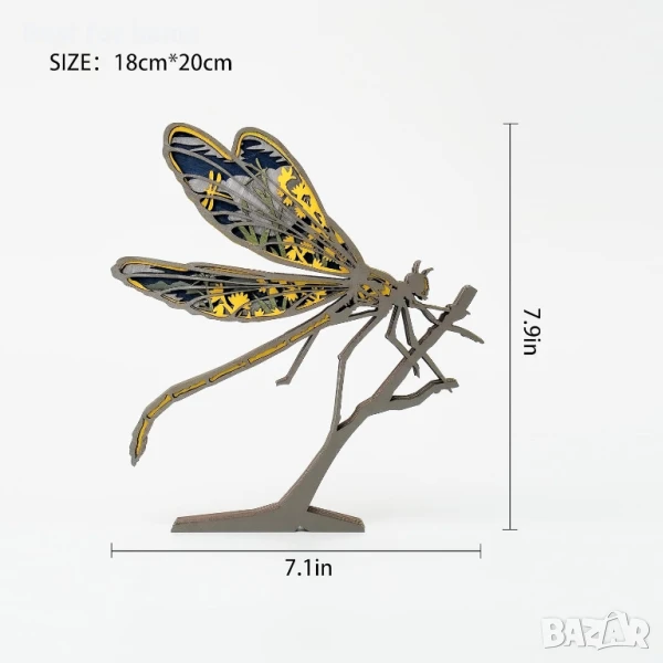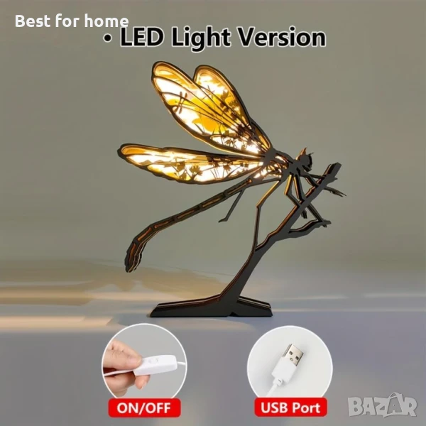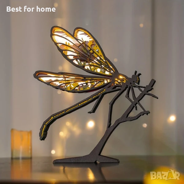 3D дървени животни, резбовани с LED нощна лампа, дърворезбована лампа, модерна фестивална декорация за домашен декор, настолен компютър, маса, хол, спалня, офис, селска къща, рафт, статуи, перфектни подаръци (водно конче).
