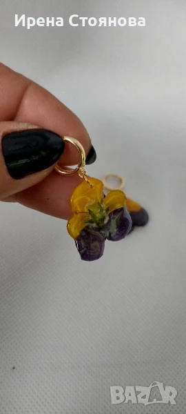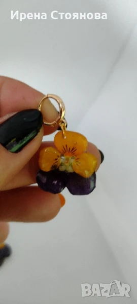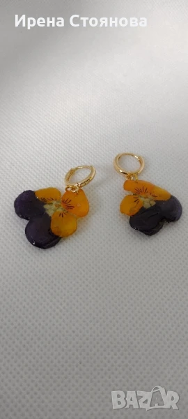 , снимка 5 - Обеци - 50565584 Мини обечки с естествен цвят на мини градинска теменужка. Цветче с размери 2/2 см.