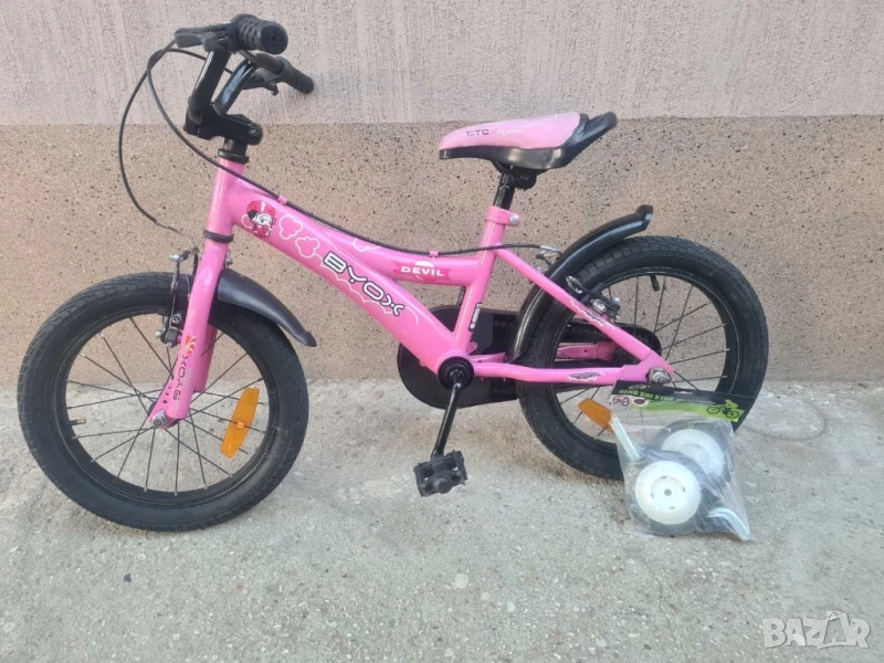 Детски велосипед 16 цола с предна и задна спирачка.Внос Германия.Всичко по велосипеда работи и е в много добро състояние.Възможност по желание на клиента за монтиране на чисто нови помощни колелета като се доплаща 15лв от цената на велосипеда .Изпращам с куриерска фирма Еконт с отстъпка за доставката или лично предаване.За повече информация на 0879046689.
