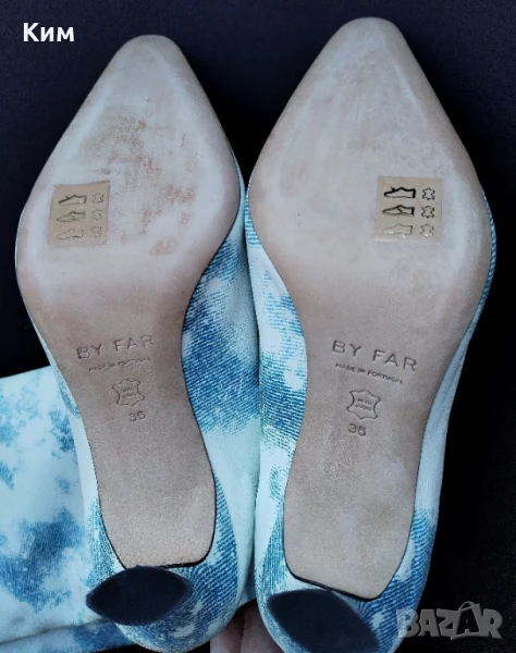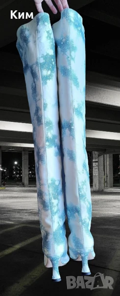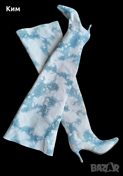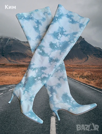 Високи ботуши By Far Stevie 99 принт небе облаци изтъркан деним → Обява 50566913