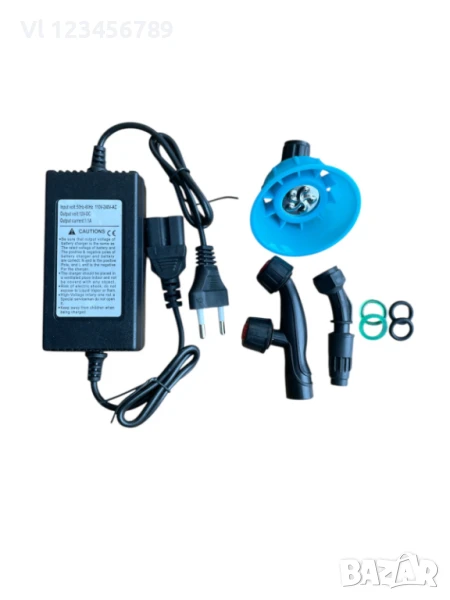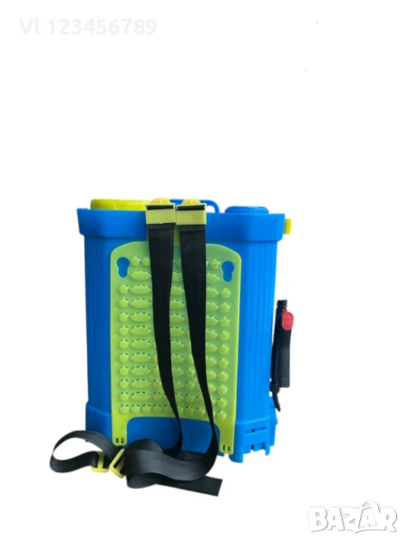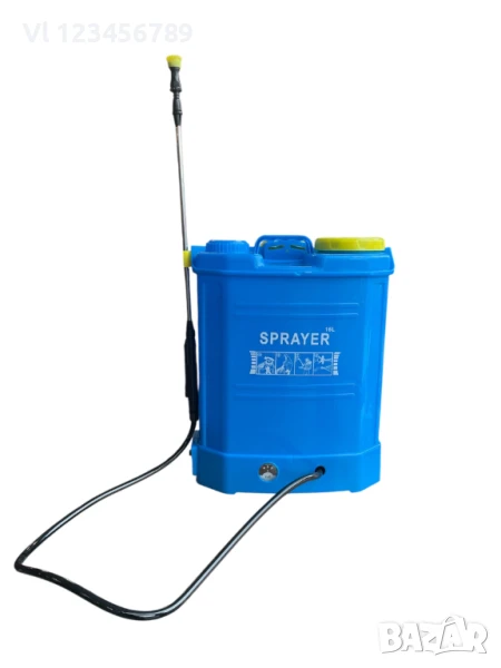 - Пръскачката използва оловен акумулатор с гел и миниатюрен електродвигател, задвижващ помпата, която създава налягането.