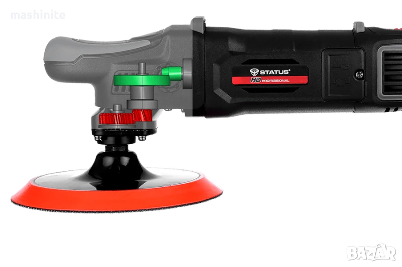 полирмашина STATUS PA150CE е с мощност 1200 W и обороти на празен ход 450-1700 об./мин. Разполага с двустепенна редукторна предавка, константна електроника позволяваща работа с постоянни обороти и плавен старт. Оборудвана е с плот за велкро подложка, свалящи се капаци на четките и гумирана подложка за хващане отпред. Има система за поддържане на постоянни обороти. С фиксиране на прекъсвача във включено положение. Полиращата машина е компактна и удобна за работа.