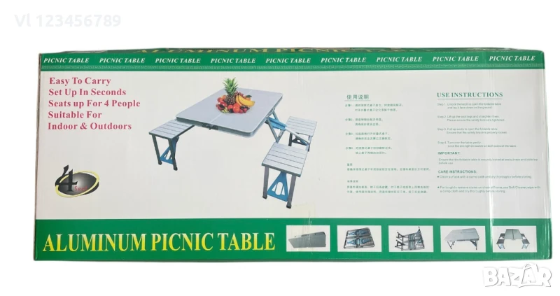 Сгъваема маса с вградени 4 стола -алуминиеви