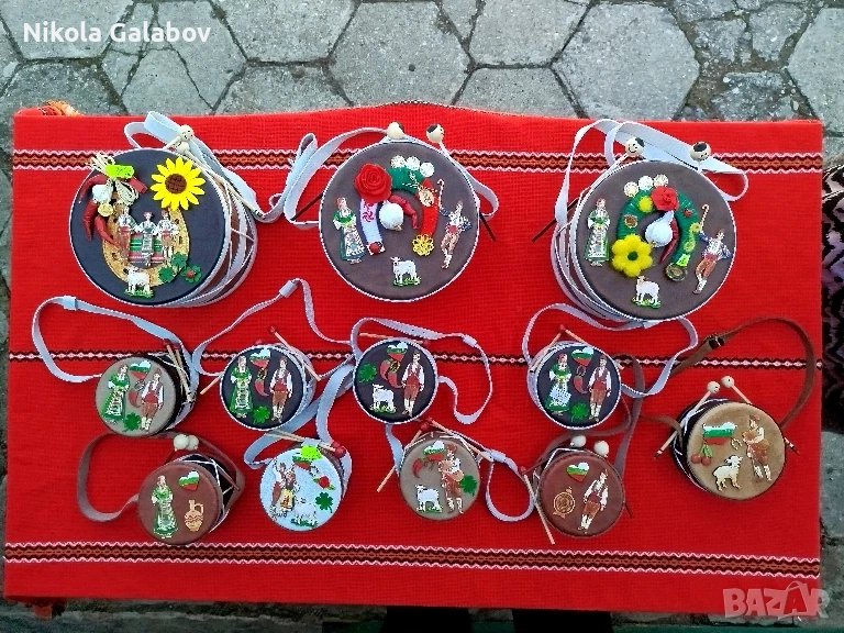 Изработвам сувенирни тъпани от естествена кожа ,различен диаметър, декорирани с естествени материали,