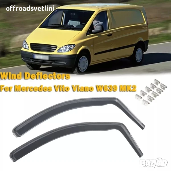 ветробрани, Mercedes Vito, Viano, W639, 2003, 2014, комплект, 2 броя, дефлектори, странични стъкла, автомобилни аксесоари, защита от вятър, дъжд