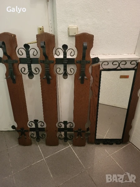 Стар Красив комплект закачалка с огледало от ковано желязо и масивно дърво → Обява 50568941