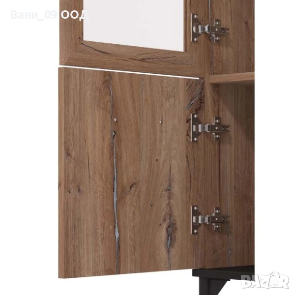 Висока витрина с размери Ш:54.5/Д:36/В:193 см. Моделът се състои от две самостоятелни отделения, в които са монтирани четири рафта, три от които произведени от стъкло обособяващи удобно място за съхранението и представянето на любими предмети или ценни вещи. Притежава светла дървесна декорация, с ясно откроени чворове и дървесни пукнатини. Витрината е стилно и практично обзавеждане за всеки дом, като Неминуемо се превръща в акцент в интериора