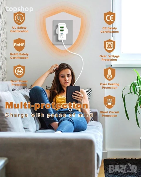 безопасност гарантират, че вашите устройства се зареждат безопасно и че самото