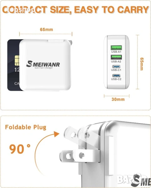 4 порта 75 W стенно бързо зарядно устройство