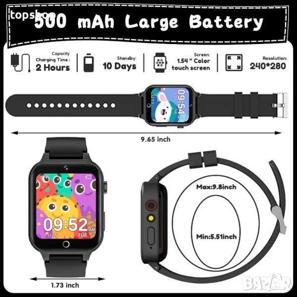 детски смарт часовник, включващ издръжлива алуминиева рамка и широк набор от образователни и забавни функции. С инструмент за проследяване на навици, HD камера, 26 пъзел игри, 35 тапета, MP3 музикален плейър, крачкомер, фенерче, диктофон, родителски контрол, безшумен режим и други, този смарт часовник предлага изчерпателни функции за деца. Устройството за проследяване на навици и крачкомерът насърчават здравословни навици и физическа активност, докато родителският контрол гарантира безопасно използване. В допълнение, HD камерата със снимане на стикери, музикален плейър и USB връзка за прехвърляне на музика подобряват забавлението и креативността. Лесен за използване, без нужда от SIM карта и с издръжлива акумулаторна батерия, този смарт часовник е идеален подарък за деца на възраст 3-12 години, идеален за рождени дни, Коледа и други поводи.
