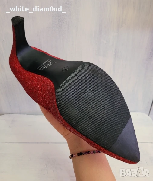 Красиви брокатени червени дамски обувки на ток номер 41 → Обява 50569598