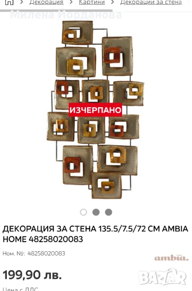 декорация за стена, снимка 1 - Декорация за дома - 50570050 декорация за стена, снимка 2 - Декорация за дома - 50570050 1/2