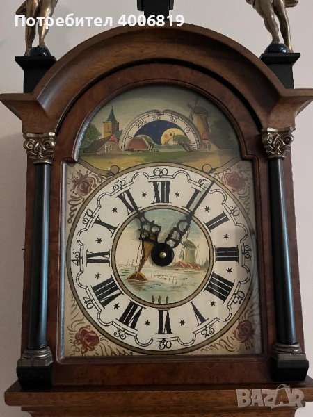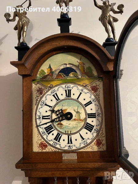 Модел и произход: Това е античен, стенен Фризийски опашат часовник (Frisian tail clock), известен още като "Schippertje". Този тип часовници произлизат от Нидерландия и са били изключително популярни.