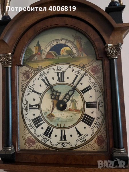 Циферблат: Ръчно рисуван с холандска сцена, най-вероятно включваща ветроходни лодки или пейзаж.