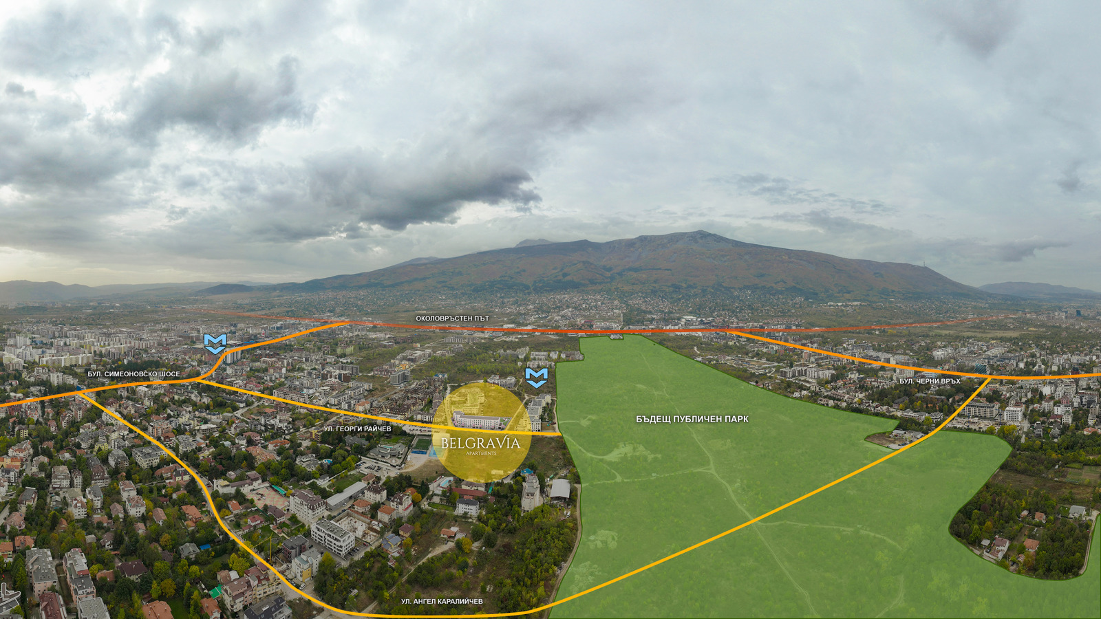 ROI Capital има удоволствието да Ви представи Belgravia Apartments: един проект насочен към хора, които мислят в перспектива. Луксозната жилищна сграда от ново поколение се изпълнява от ELITE Building Company, като съчетава в себе си редица световни иновации в посока енергийна ефективност, екологичност, устойчивост и висока технологичност. Нейната атрактивна локация я прави идеален избор както за Вашия бъдещ дом в гр.София, така и за инвестиционните Ви намерения с цел отдаване под наем или бъдеща препродажба. Разположена е в зона с преобладаващо нискоетажно строителство и охолни отстояния от съседни сгради, което осигурява тиха и комфортна среда за живот с панорамни гледки към Витоша и центъра на града. В непосредствена близост предстои да се реализират метростанция и публичен парк. Сградата впечатлява с отличаваща се архитектура, елегантна фасада, безупречна функционална схема и богато озеленена градина с детска площадка. Прецизно строителство с материали от най-висок клас и ниво на изпълнение без аналог в района.