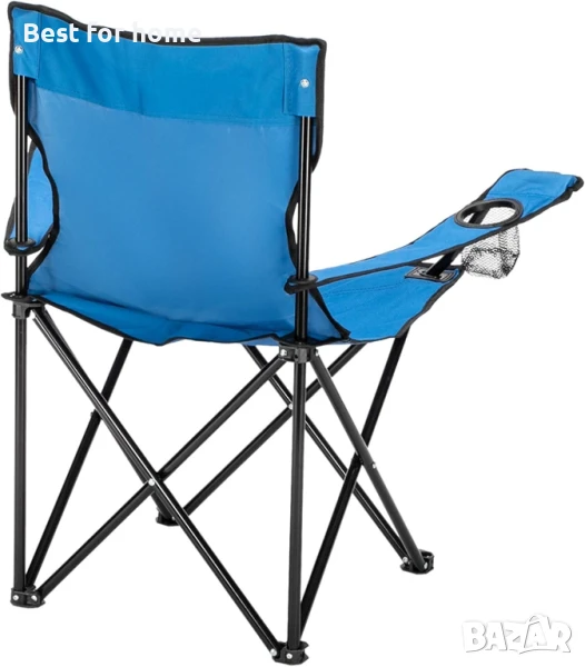 Къмпинг стол, преносим сгъваем стол с подлакътник, поставка за чаша и чанта за носене и съхранение (син, (19,69 x 19,69 x 31,50))