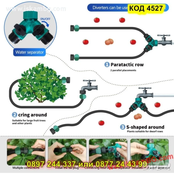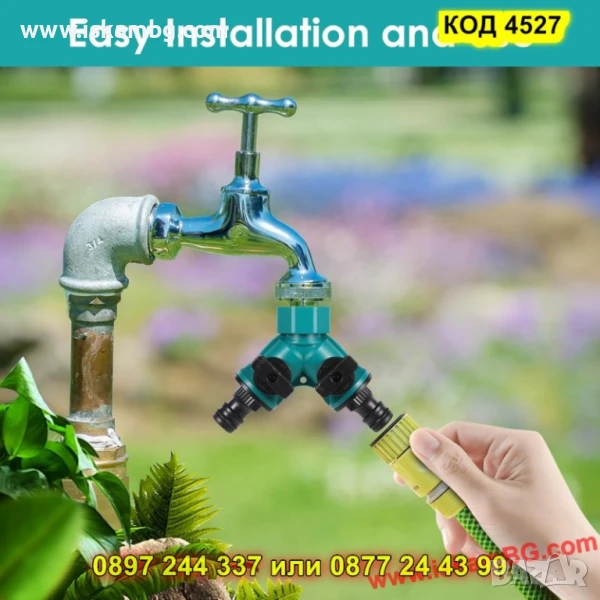 Този интелигентен аксесоар се монтира директно към външната чешма и я превръща в ефективна разпределителна система с два независими изхода. Всеки изход има собствен кран за управление, което ви дава възможност да използвате двата едновременно или да ги управлявате поотделно – прецизно и удобно.