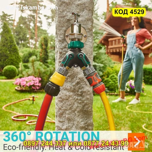 Създайте повече свобода в градината си с качествения Y-образен двоен разклонител с два крана. Превърнете един източник на вода в две независими връзки – бързо, лесно и без загуба на налягане. Независимо дали поливате цветя, пълните басейн, или миете колата, този практичен аксесоар ще ви осигури необходимия контрол и гъвкавост във всяка ситуация.