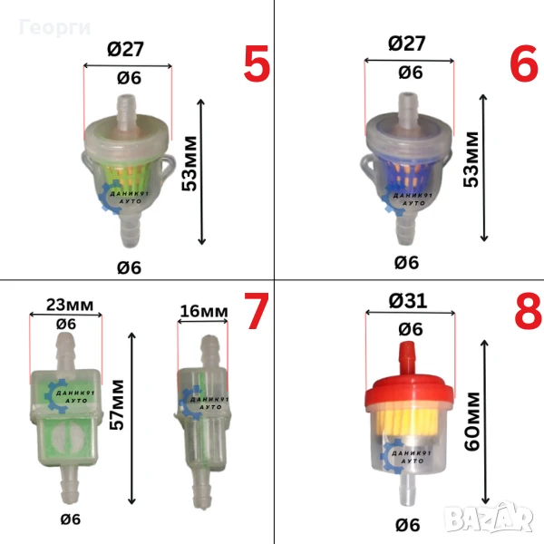 04. Филтър горивен бензин син Ф6 Ф26 50мм - 3,00 лв. ( 1,53 € )