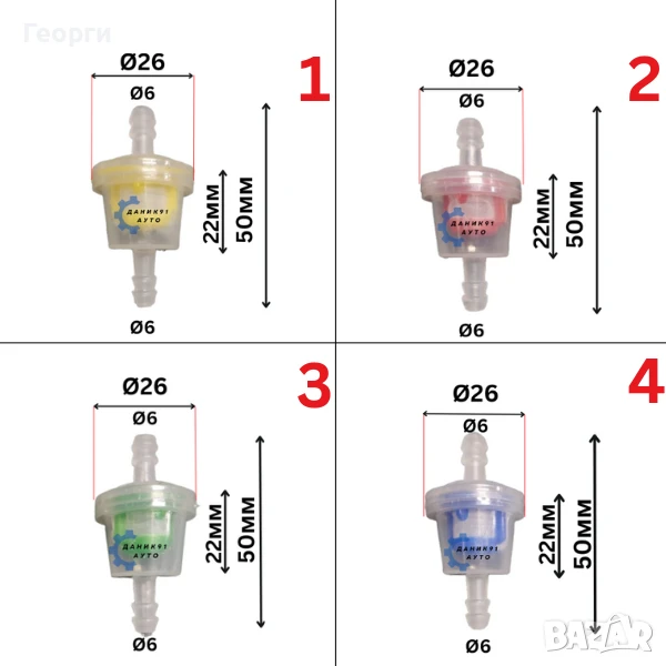 01. Филтър горивен бензин жълт Ф6 Ф26 50мм - 3,00 лв. ( 1,53 € )