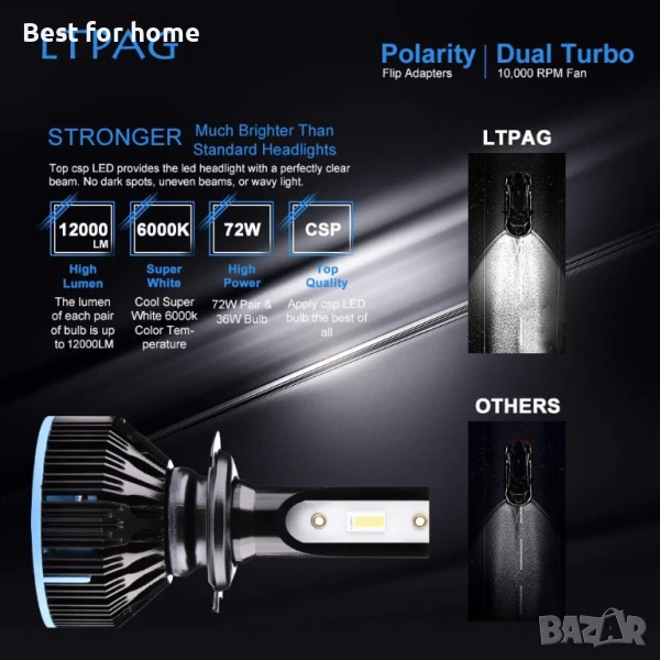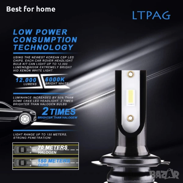 LTPAG H7 LED крушки за фарове, 12000LM -2 броя