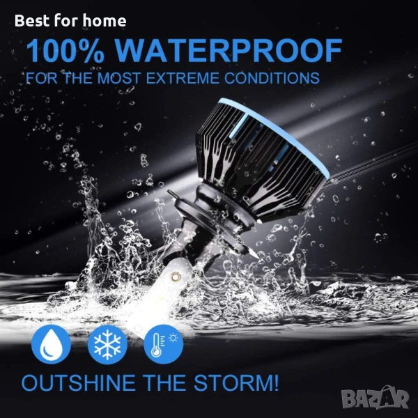 Корпусът на лампата е изработен от аерокосмически алуминий 6063, издържа на високи температури. Водоустойчива е със степен на защита IP68, работи чудесно при автомивка и дъждовно време.