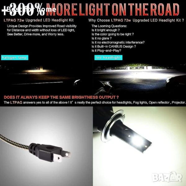 Тези LED крушки използват AirCool честотно преобразувател с интелигентен безшумен вентилатор за автомобили, перфектна 360° светлина, те са чудесен заместител на стари халогенни / HID / ксенонови фарове!