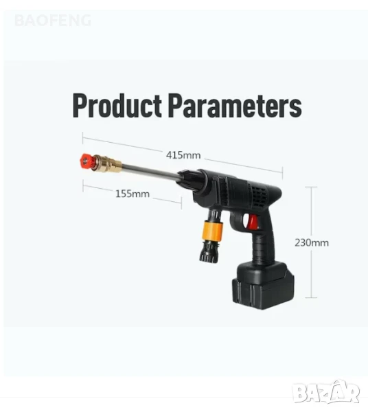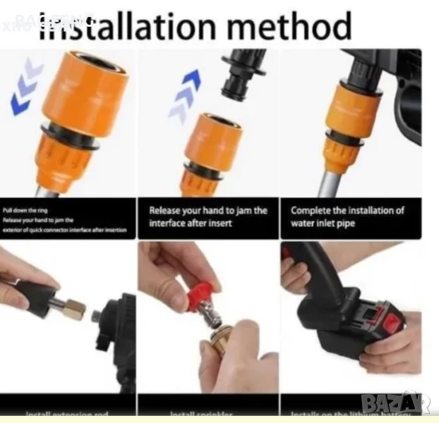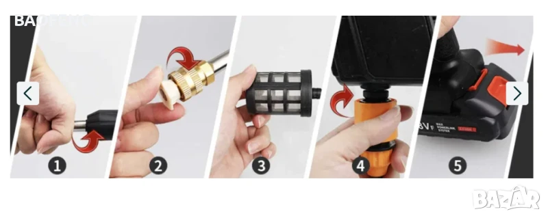 [Преносим безкабелен без необходимост от вода под налягане]: Устройството за миене под налягане, захранвано от батерии, разполага с безжичен дизайн, който премахва кабелите и нуждата от вода под налягане (просто потапяте маркучът в кофа,шише или дори езерото). Сглобяването отнема само минутa, а батерията с голям капацитет осигурява висока мощност на пръскане .
