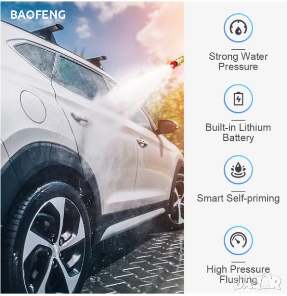 ТОП ЦЕНА АКУМУЛАТОРНА ВОДОСТРУЙКА за кола дом градина 30 bar