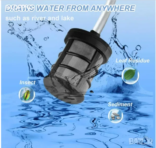 Функцията за самозасмукване позволява теглене на вода от кранове, реки и кофи.