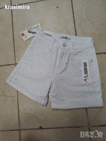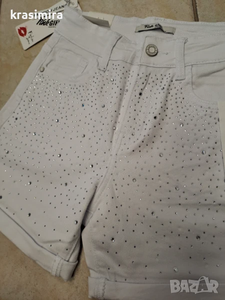 Нови къси бели панталонки с камъчета с размери 25,26,27,28,29,30.