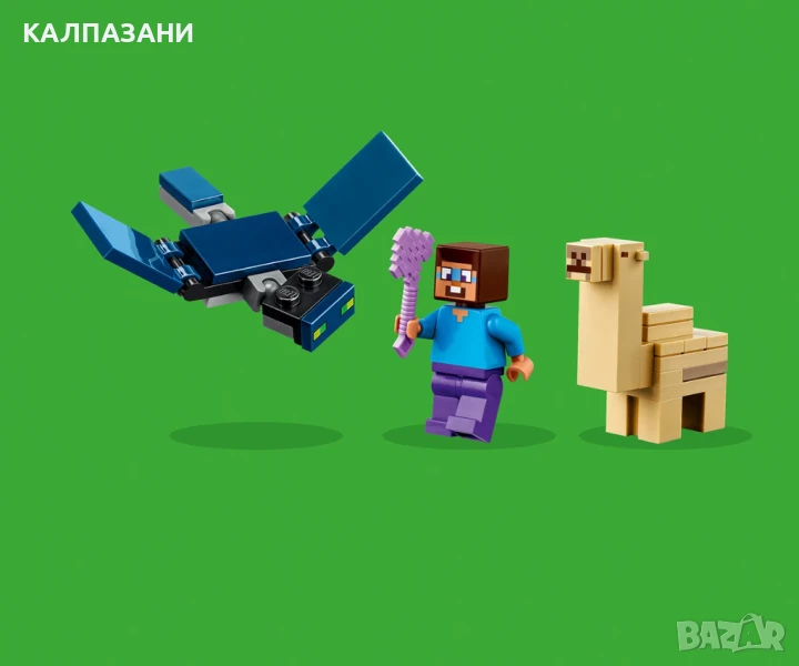 - Играчка за построяване с минифигури от Minecraft® – включва минифигура на популярния герой Стив от Minecraft, фигура на бебе камила (за първи път!) и фигура на летящия Фантом с подвижни крила