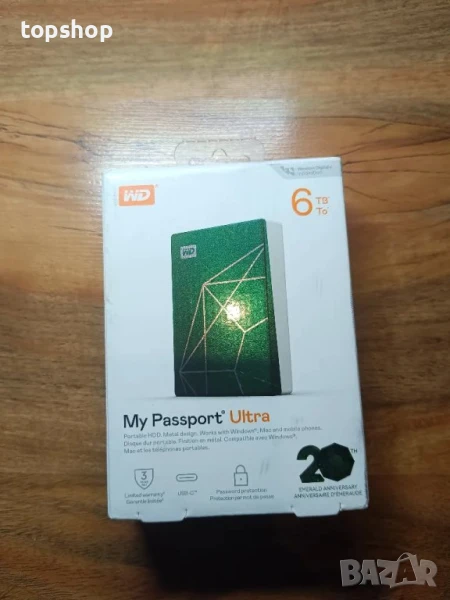 НОВ, ЗАПЕЧАТАН, НЕОТВАРЯН WD 6TB My Passport, Черен, Софтуер за архивиране и защити срещу...