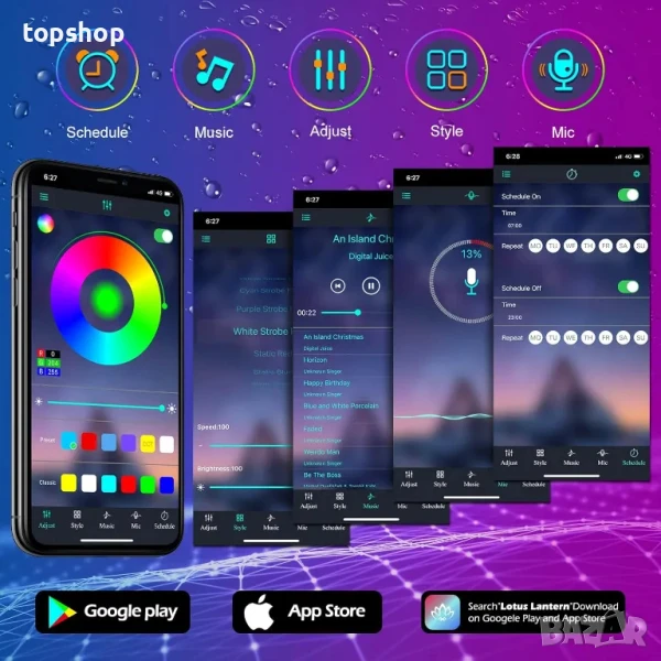 【Синхронизиране на музиката с LED ленти】Приложението възпроизвежда любимата ви музика, а цветовете на външните LED ленти се синхронизират с музиката. Идеална декорация за всякакви празници и партита, като например декорации за рождени дни и коледни партита.