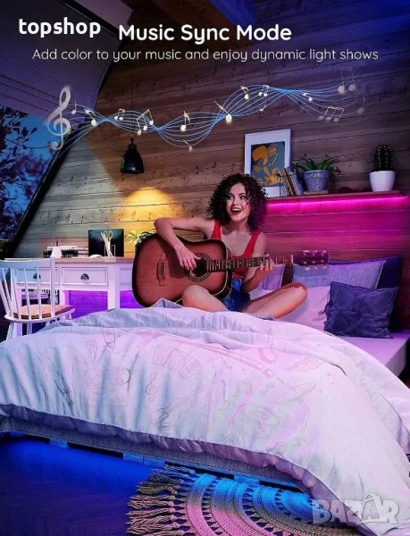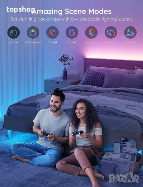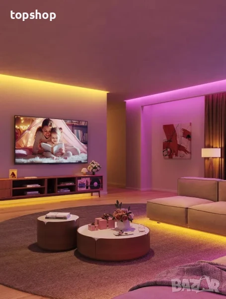 Гласово управление със свободни ръце: Умната LED лента работи както с Alexa, така и с Google Assistant. Освободете ръцете си и включвайте и изключвайте осветлението, променяйте цветовете или регулирайте яркостта с прости гласови команди.