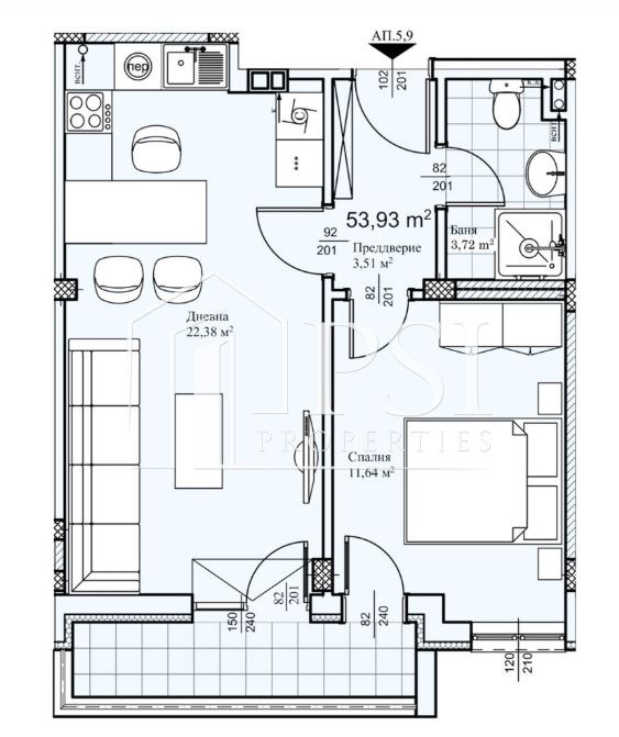 PSI Properties Ви предлага двустаен апартамент в новоизграждаща се сграда кв. Прослав