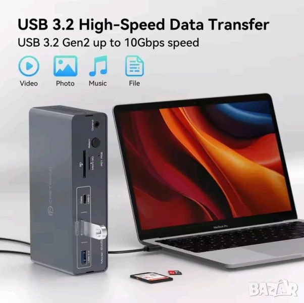 Представям ви една от най-мощните и универсални USB-C докинг станции на пазара – CMSTEDCD SW522 (13-в-1). Идеална за всеки, който иска да трансформира лаптопа си в пълноценна работна станция с множество възможности за свързване, без да жертва производителност.
